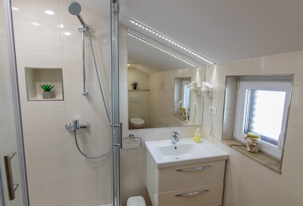 Kupaonica: tuš kabina, umivaonik, zahod, fen za kosu.