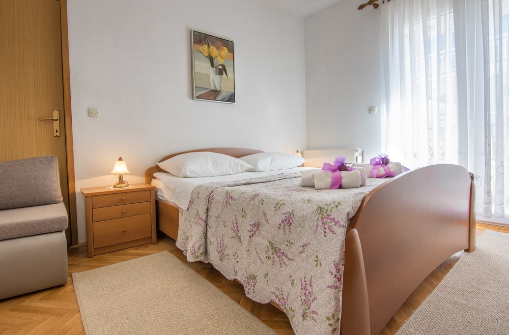 Spavaća soba: krevet za 2 osobe, pomoćni krevet-fotelja na razvlačenje, televizor, sef.